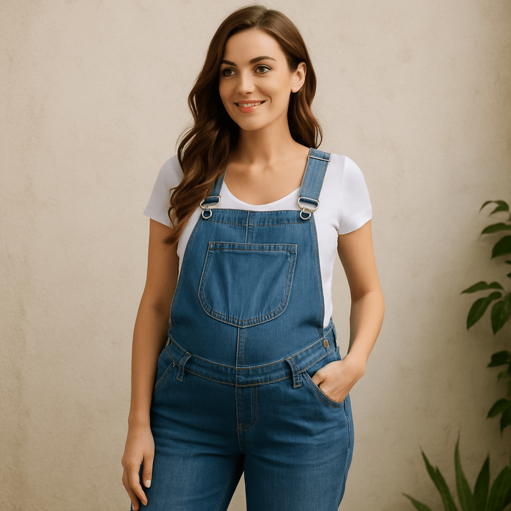 Einer der Hauptvorteile von Latzhosen für Schwangere oder Latzhosen in Übergrößen für Damen sind ihre verstellbaren Träger.